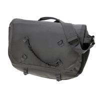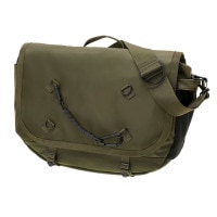 メッセンジャーバッグは大容量のメイン収納部と、内装に16inchのPCを収納できるクッション材入りのポケットを設けています。サイドポケットには600mlのペットボトルや折り畳み傘を収納することができます。背面側の上部にファスナーを設けることで内装に直接アクセスできる仕様で、フラップを開けなくてもPCや荷物を取り出すことが可能です。また、収納部の口元部分を金具で留めることができる仕様のため、型崩れしにくいのもポイントです。 |